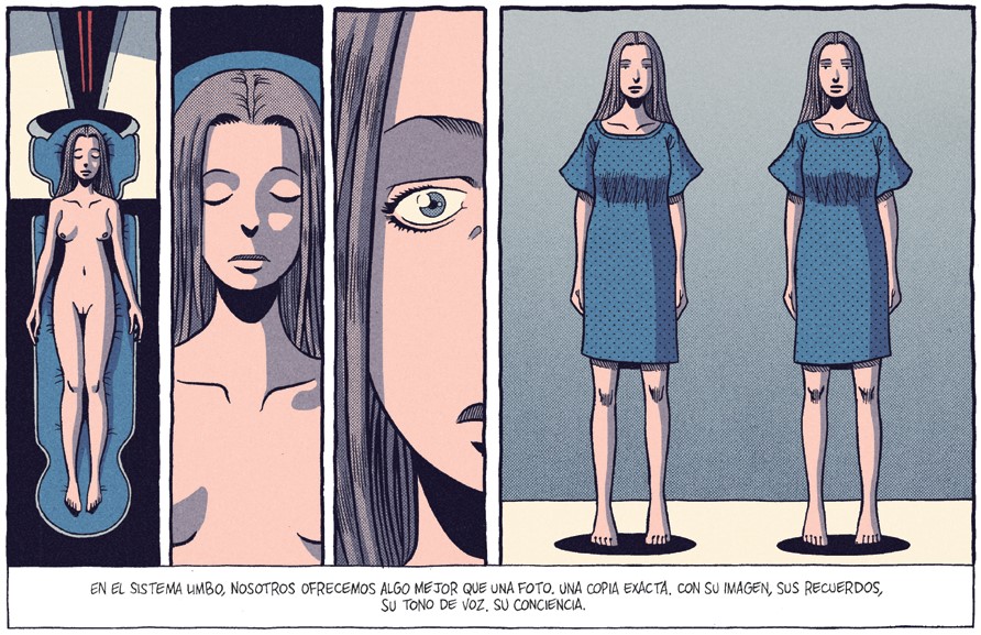 El párrafo anterior representa a algo así como las primeras 20 o 25 páginas de las casi 100 que tiene la historieta y abundar más sobre lo argumental es arriesgarse a develar más de lo necesario para una trama no exenta –adrede- de ambigüedades y retaceo de información, o sea suspenso; lo que no es spoiler alguno adentrarse un poco en los temas ya planteados. Cuanto espacio (virtual, claro) se ha llenado acerca del fear of missing out, o sea miedo de perderse algo –lo que sea-. El castillo… despliega generosa pero sutilmente naipes sobre el paño para poder pensar sobre la manía de esta época de documentar absolutamente todo. Ejemplos de ese mapa comiéndose al territorio abundan: ¡qué es más importante, el recital que ocurre o una mala grabación de él? ¡Es necesario un registro constante y sonante de la experiencia? Y mejor aun: ¿Dónde vive esa experiencia? El castillo… se hace eco de la pregunta que se hacían Do androids…y Blade Runner acerca de la experiencia de estar vivo y qué nos hace efectivamente humanos: flota como posible respuesta lo intransferible de los recuerdos, la interioridad e intimidad de los recuerdos. Un secretismo que empieza solos al nacer y concluye solos al morir y allí es la mayor parte de las veces donde se dirige el racconto –veraz o no- de absolutamente todo lo que experimentamos.