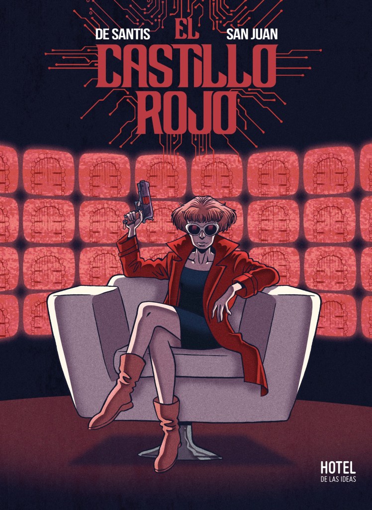 Incontables maneras hay de dar testimonio lomásglobalposible sobre el tiempo presente, y de seguro Pablo de Santis en el guion y Matias San Juan en el dibujo se acercan al máximo de sus posibilidades con El castillo rojo, con edición local por Hotel de las Ideas en 2023. El nudo básico de El castillo… lo constituyen temas característicos del siglo XXI (y en particular de esta década de los 20’s) como la deshumanización, la inteligencia artificial, la desmaterialización de la experiencia y en especial esa suerte de realidad paralela que es la nube virtual, el espacio donde hace rato damos alojamiento al registro de las experiencias. Característicos pero no privativos de este siglo: ya en 1968 Phillip K. Dick había anticipado de alguna manera varios de estos temas con su novela Do androids dream of electric sheep y su adaptación/desviación al cine, Blade Runner. De esta última De Santis toma el tono de fusión de noir y ciencia ficción y el esquema argumental persecutorio de especialista dando caza a androides.