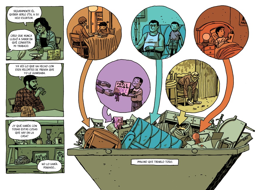 Ay, las palabritas mágicas, novela gráfica autobiográfica, pero no: Roca basó su comic de 2015 en su experiencia personal, pero no respetó al pie de la letra las vivencias personales, e hilvanó un argumento -con muchos de los sinsabores y faltas de resoluciones típicas de la vida real-, pero argumento al fin. La casa justamente identifica un momento un momento inevitable -por biológico, simplemente- para aquellos que transiten la amplia franja etaria entre los treintaypico y los sesenta: la partida del plano físico del último padre (o madre) con vida y el “bueno, ¿qué hacemos con la casa familiar?”. Cada hermano en la historia ocupa su espacio/rol definido: el mayor con la cruz -autoinfligida- de “hacerse cargo de todo”, el del medio algo en cualquiera, la menor no desentendida, pero sí con algo de “la última en llegar”. Y todos ellos con sus parejas/familias a cuestas -quizá los mejores personajes, los que se dan mayor espacio a la reflexión y/o la distensión, seguramente por la carencia de obligación directa-.