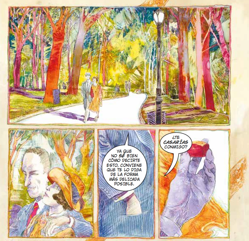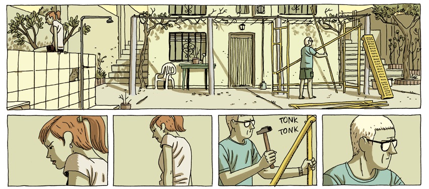 Llevados con un dibujo muy engañosamente simple -más un trabajo de decantación de un estilo realista que algo simplista-, un oído atento para dejar lugar a los diálogos certeros, como así a los silencios o la deriva visual del ojo narrador por los recovecos de la escena, el autor de Arrugas pone en escena una historia sobre la vida de los espacios arquitectónicos, su falta de “inocencia” -o sea los lastres que pesan sobre ellos, pero también las victorias, pequeñas o no-; un acercamiento a como imprimimos nuestra conciencia en los lugares que habitamos y los efectos residuales que permanecen luego.