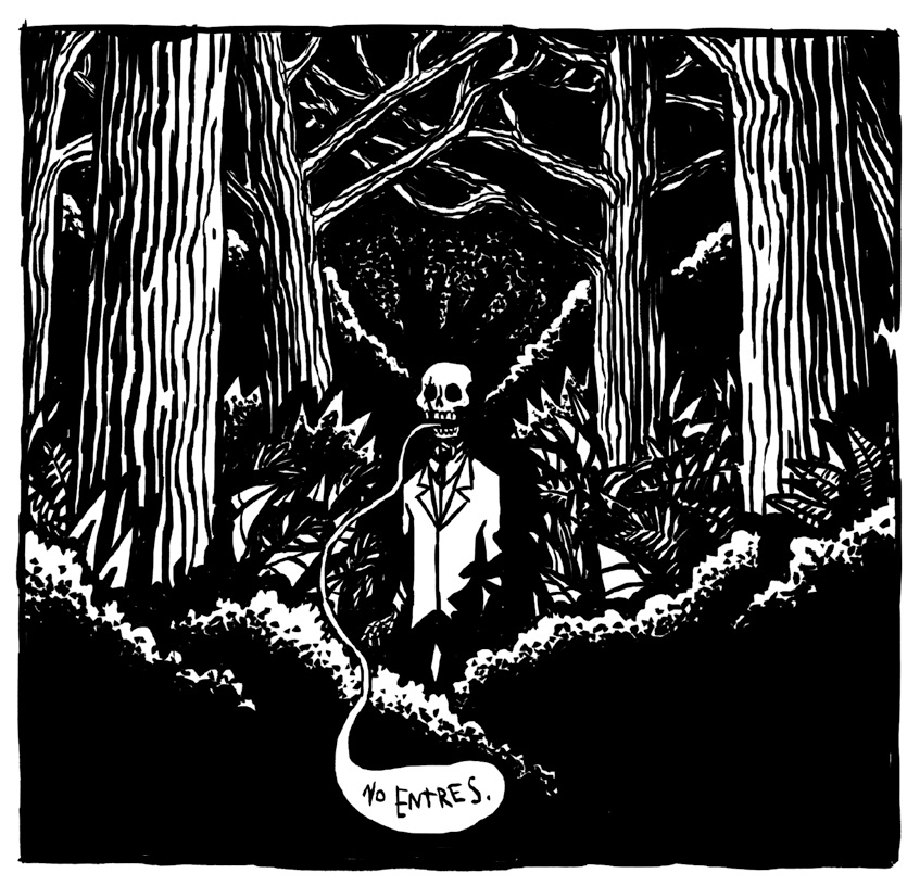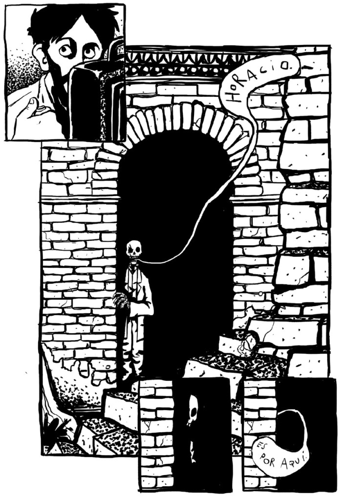 Pero volvamos al juego de las diferencias, ahora en la impronta visual: Musetti encara Q totalmente en blanco y negro, en un estilo fuerte, sucinto y expresivo (pese al aire a Alberto Breccia, no expresionista: no busca impresionar ni se desgarra, y está lejos de solemnidad alguna), con una destreza narrativa envidiable para un autor, encima novel: lugar para que el silencio pueda encauzar el relato, saltos de viñeta a viñeta con sabias dosis de elipsis, variedad de encuadres. Tanto como Q como Lovecraft, para alzar la copa de la síntesis, hablan y ponen en puesta una exuberancia incontrolable, puertas adentro o puertas afuera de la cavidad craneal.